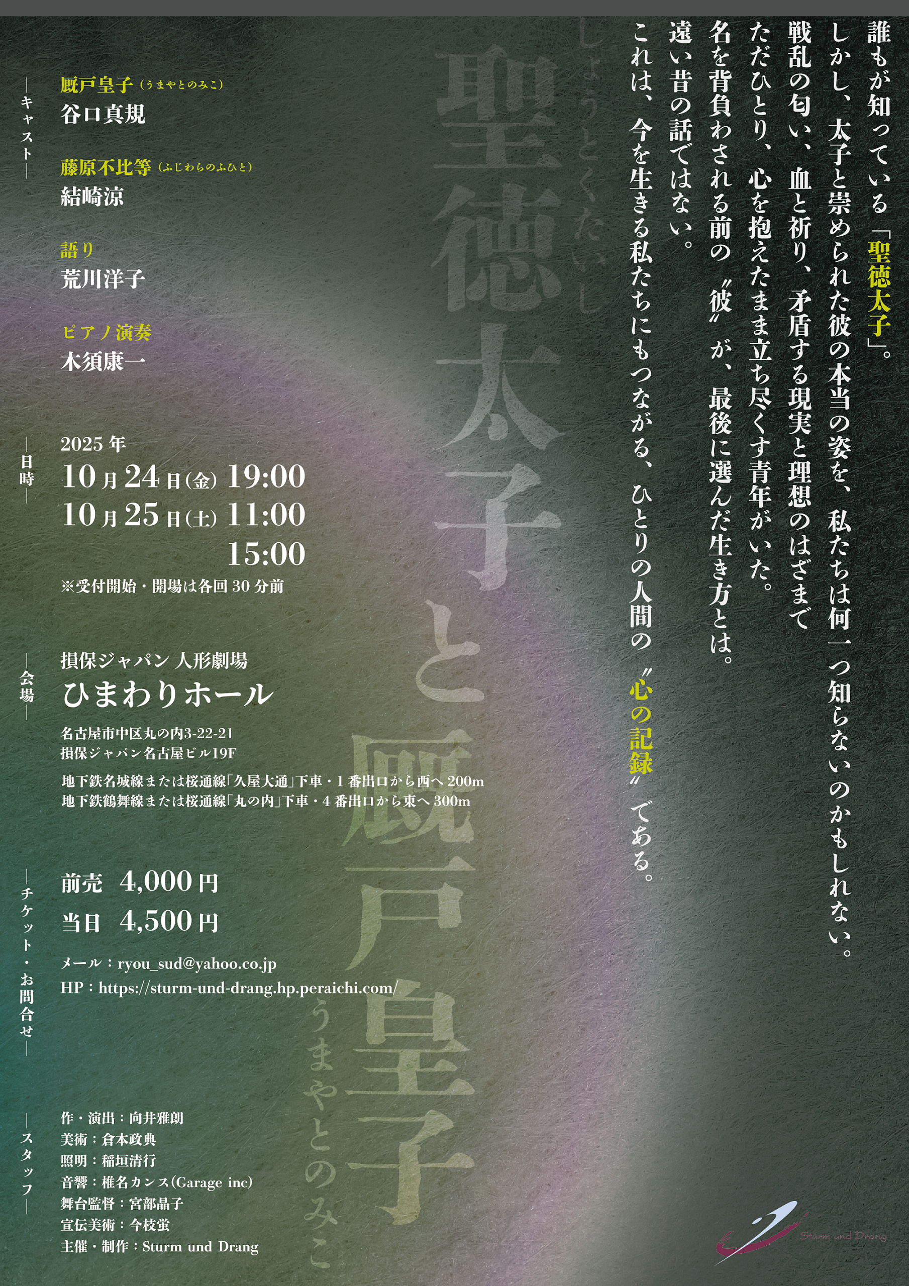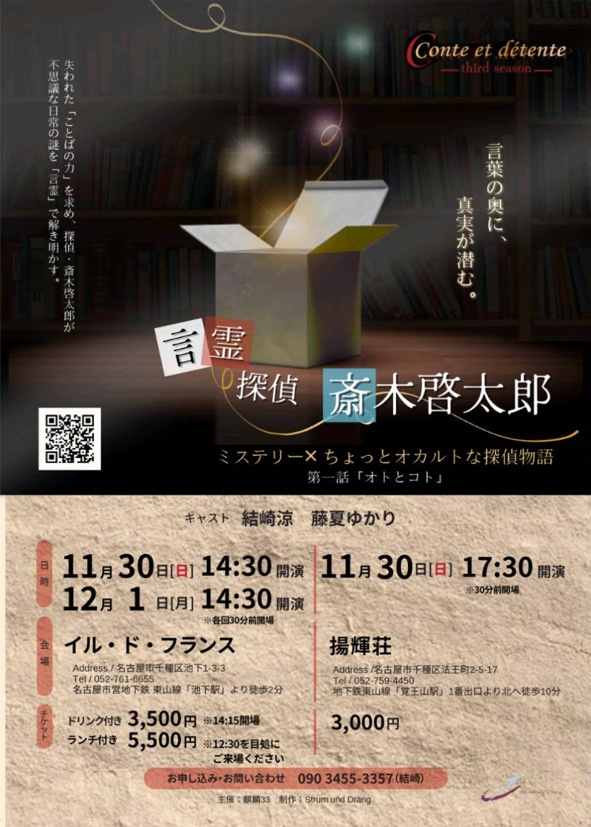 2022年12月3日(土)4日(日) 劇団Sturm und Drang 本公演 独逸三部作其二「如月」出演:結崎涼 神来社亘 松矢美詞 谷口真規 伊藤みづめ 景山紀子開演:3日13時・18時/4日13時会場:熱田文化小劇場